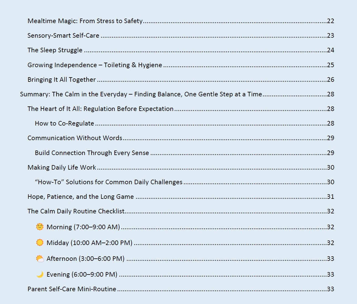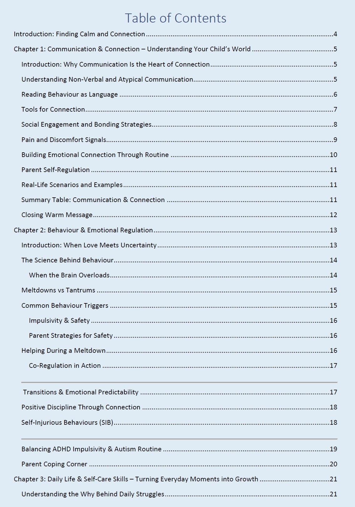 This guide is here to help you feel calm, confident, and connected. Learn to notice your child’s gestures, movements, and little signals. Discover gentle ways to ease overwhelm, create comforting routines, and make home a safe, happy place.