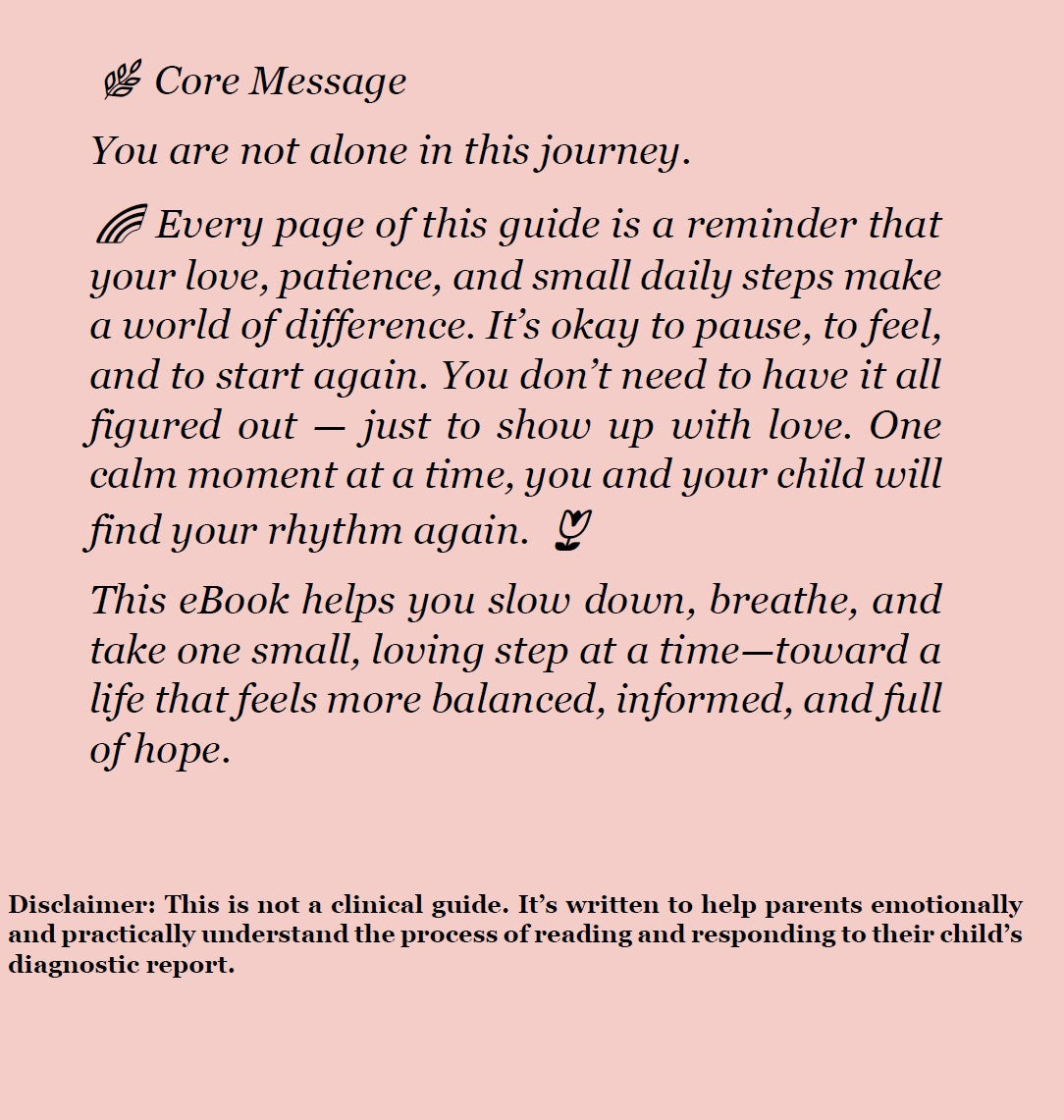 Your Compass After the Diagnosis is a gentle, science-informed guide that meets you where you are. Learn to decode therapy reports, understand your child’s sensory and emotional world, and create a predictable, calming home. With simple tools, visual supports, and real-life strategies, you’ll feel more confident, connected, and capable — helping your child thrive while nurturing your own wellbeing.