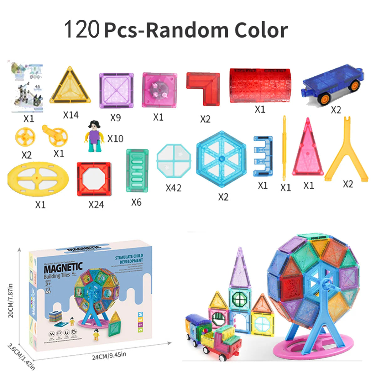 The MagnaWhirl™ Ferris Wheel STEM Toy combines the magic of magnetic tiles with the joy of building motion. Specifically designed to support kids with autism and ADHD, this sensory-friendly STEM toy encourages visual tracking, fine motor skills, and imaginative engineering.