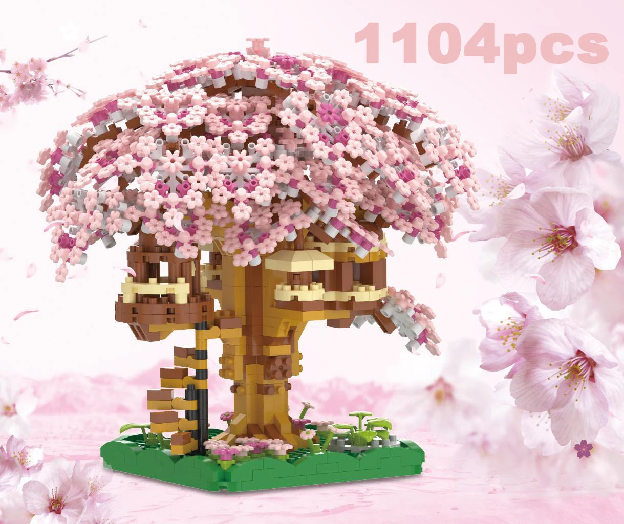 Mini Pink Cherry Tree House Micro Blocks – DIY Building Kit for Kids 8+