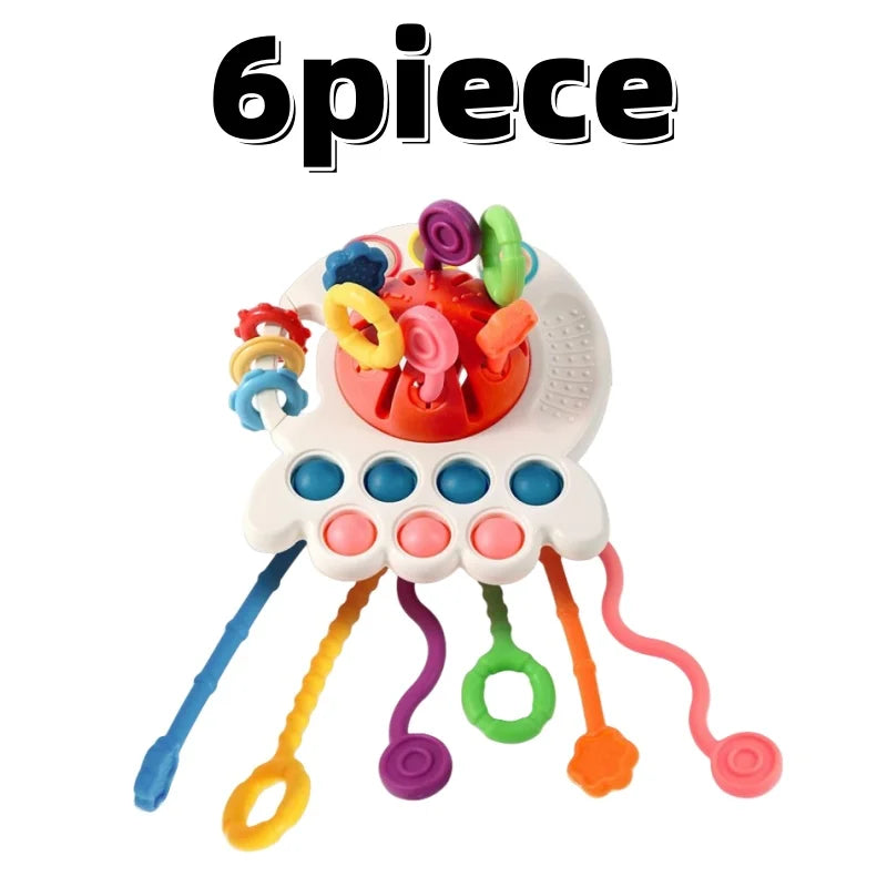 The TeetheTrek™ Baby Sensory Push-Pull Teething Toy offers gentle gum relief combined with interactive motor skill development. Designed for infants 3 months and up, this toy encourages hand-eye coordination and fine motor skills through fun push-pull actions.